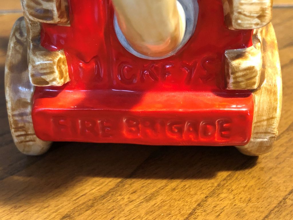 Only the word ‘Disney’ is given for the copyright/branding with ‘Mickey’s Fire Brigade’ engraved into the rear of the pot. No manufacturer is credited so dating is problematic.