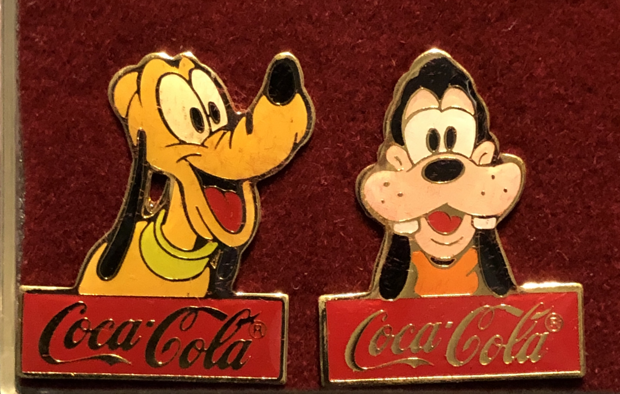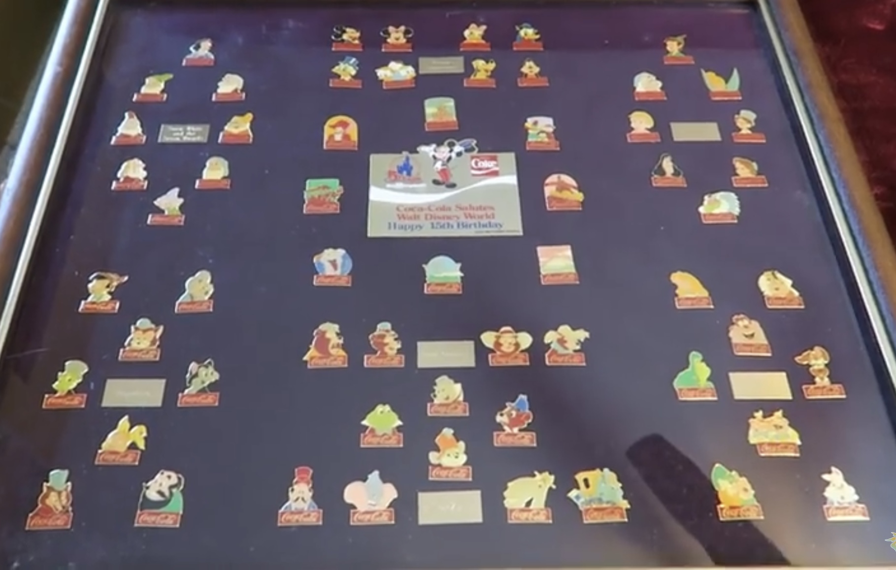 In 1986 the Coca-Cola company celebrated the 15th Anniversary of Walt Disney World with several commemorative pin sets. I only own one, the main character set, in its original plastic display case. Apparently each set was a Limited Edition run of 1,000. But I can’t confirm that for certain.