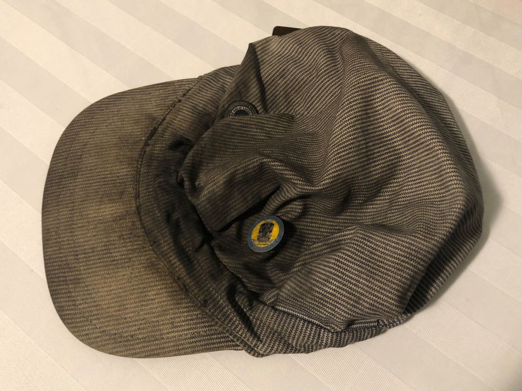 I’m told that for the sake of authenticity you never clean a Engineer’s cap! The Brakeman’s cap was produced by William Scully Ltd. which has been in business since 1898. To differentiate the duties of each man on the railway, the cap would have a different colour for the band. The cap in IMAGE FIVE and SIX (above) sports a yellow band, making it a Brakeman’s cap. If the band was red it would belong to a Conductor.
