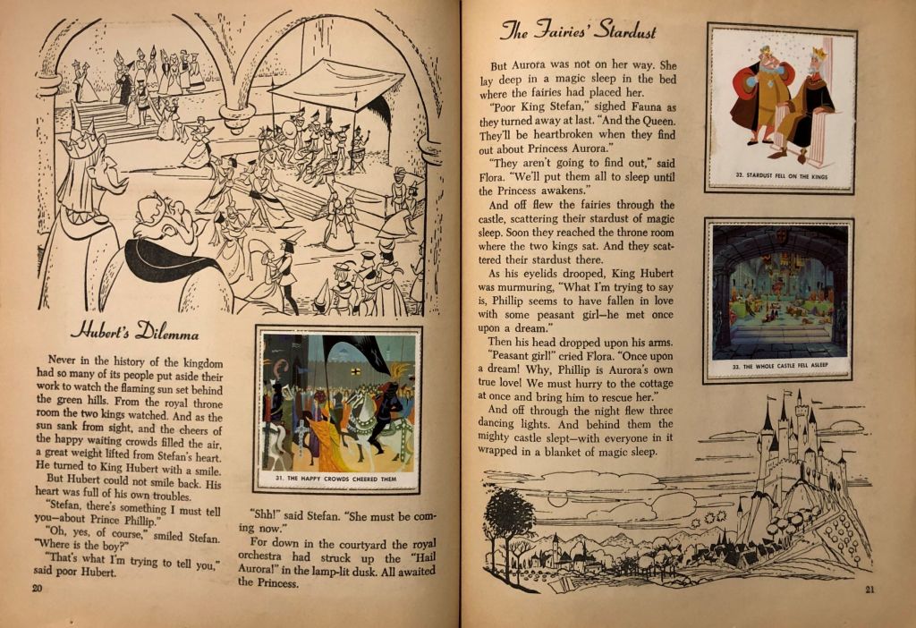 This Stamp Book was released a full year before the movie to drum up interest in the release. Disneyland already had the Sleeping Beauty Castle as its centerpiece in the Magic Kingdom since 1955. But the more Walt could promote an up-coming project the better!