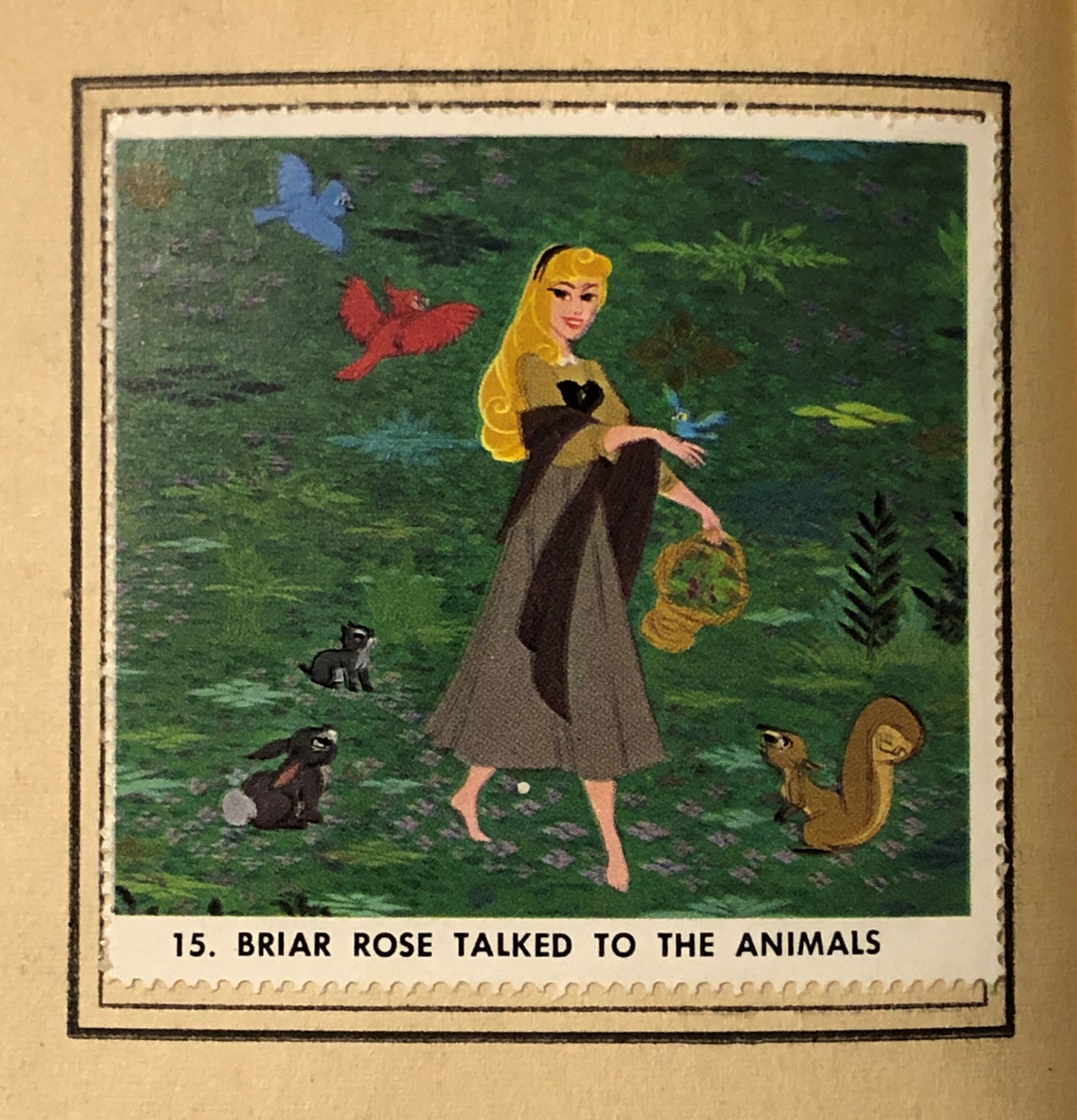 This Stamp Book was released a full year before the movie to drum up interest in the release. Disneyland already had the Sleeping Beauty Castle as its centerpiece in the Magic Kingdom since 1955. But the more Walt could promote an up-coming project the better!