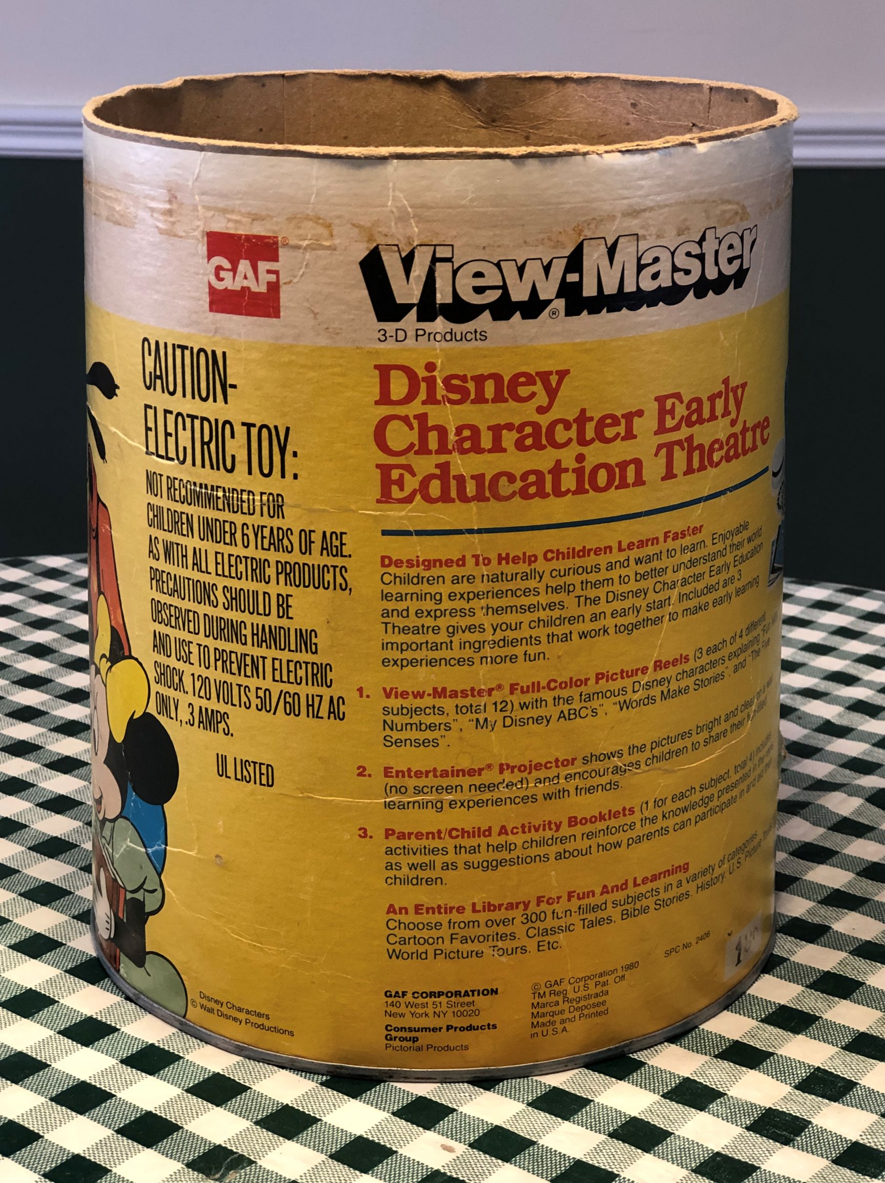 You can see my GAF View-Master Gift Pak by clicking the link, but this: The GAF View-Master Disney Character Early Education Theatre is a step beyond the classic viewer you’re used to: