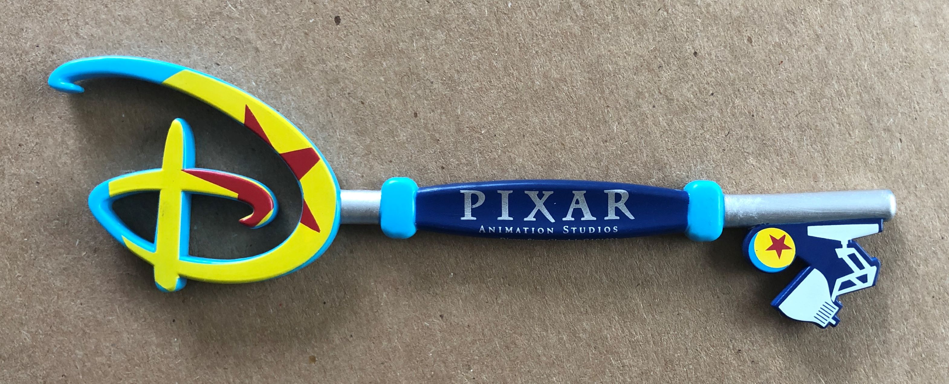 DESIGN CUES: The Disney ‘D’ is emblazoned with the Pixar Ball. The shaft simply states the name of the division. The teeth of the key is the Luxor Lamp along with a smaller version of the Pixar Ball. Being upside down, I wonder if Luxor Jr’s electricity is running to his bulb?