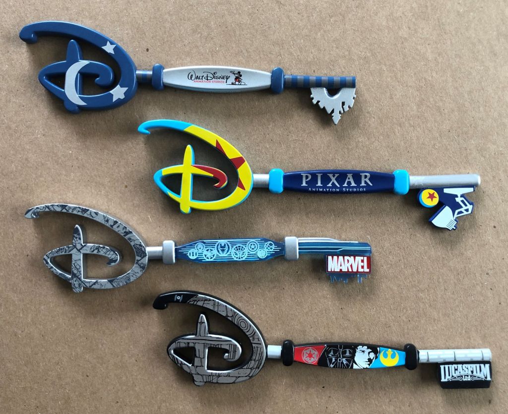 This Disney Store exclusive plastic Key set featuring the Disney Divisions of business are fun little keepsakes. They are rather cheaply made and so very lightweight. But they feature some interesting design cues that we will explore shortly.