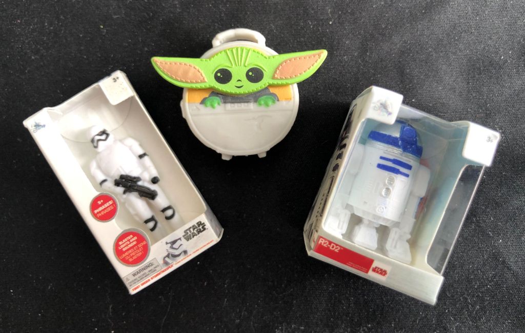 There are seven Ultra-Rare figures, of which I now have two after buying only four balls. Most of the figures are considered Common and cover characters and props from Disney, Pixar, Marvel, and Star Wars. You can also find some cute display stands, although I don’t know yet how they would fit in a standard ball container. They are called Collector’s Case Exclusive figures.