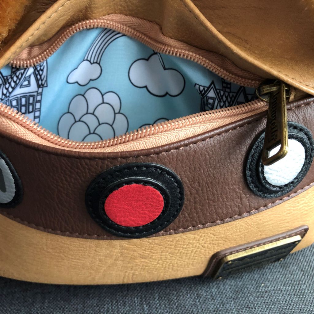 It’s always fun and exciting to open a Loungefly Mini Backpack for the first time! The inside always has a themed pattern the relates to the character on the bag. In this case, we have wonderful black and white images of Karl’s house flying with its balloons, lots of clouds and rainbows, all against a clear blue sky.