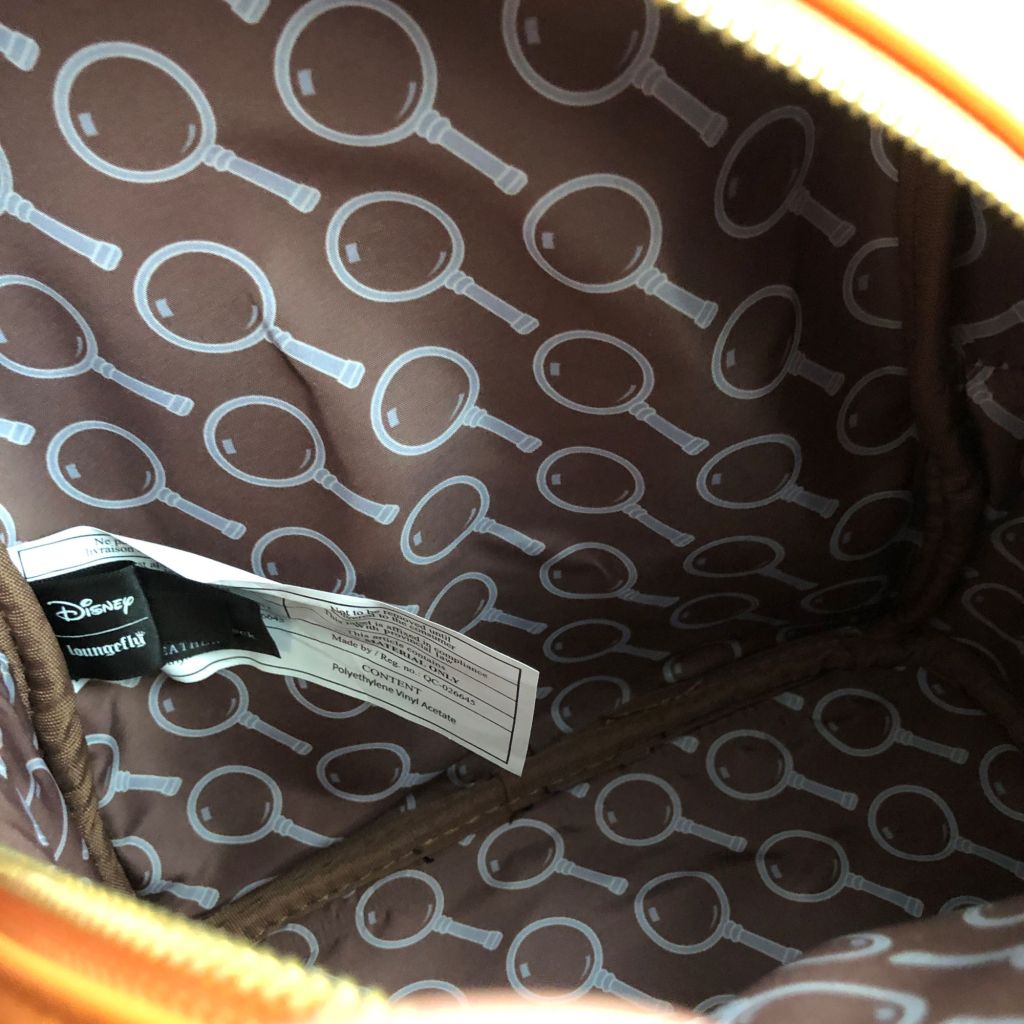 The inside of the main bag compartment is covered in little magnifying glasses. Because apparently all detectives, although brilliant, have bad eyesight.