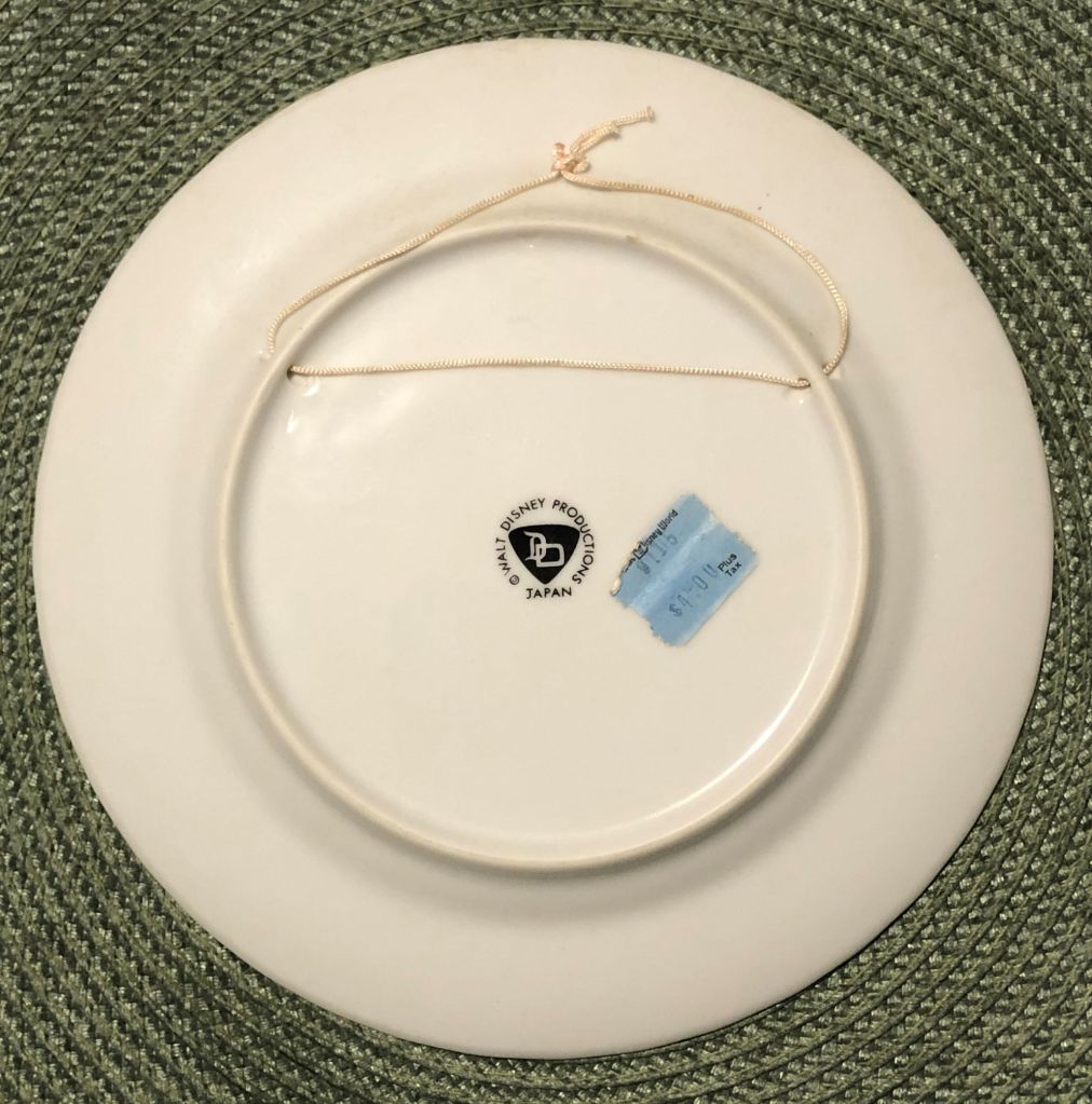 The plate is branded as Walt Disney Productions (so pre-1987) and as being made in Japan. Later plates and merchandise were made in other countries, most often China.