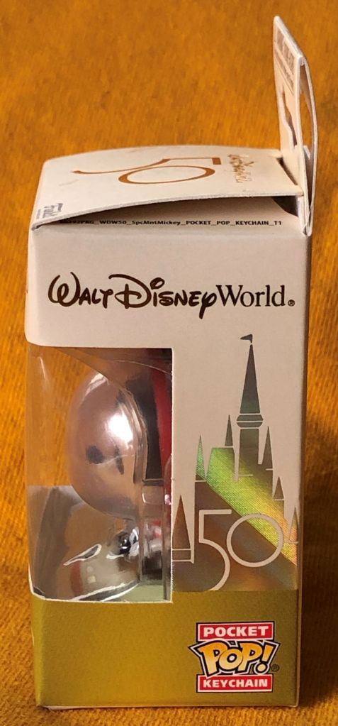 Thanks to worldwide events, the 50th Anniversary of Walt Disney World was less than it could have been! About the best thing that came out it was the excellent line of merchandise with its gold foil shimmer. You can see that on the packaging for this Pocket POP! Keychain featuring Mickey Mouse at the Space Mountain Attraction.
