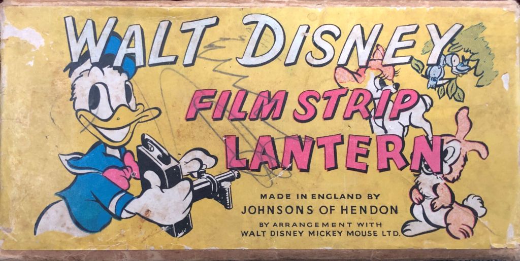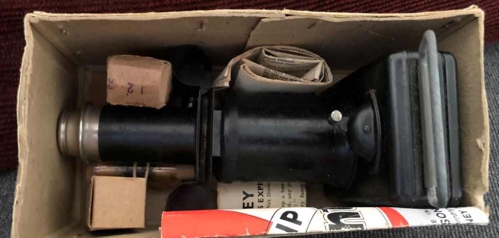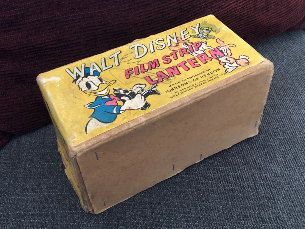 Today’s collectible has somehow traveled all the way from England, and from the past, to the present. This Walt Disney Film Strip Lantern, or ‘projector’ as they would later be called, likely dates from the early to mid 1940s.