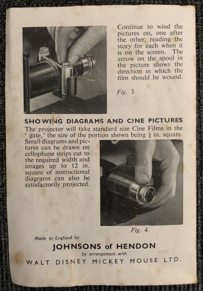 This mechanical wonder is promoted as ‘any child can use it’ but I take issue with that! After playing with the film threading process for a bit, I would find it hard to believe a young child could get the hang of it and manage to advance the film cells in sync with the spoken scripts.