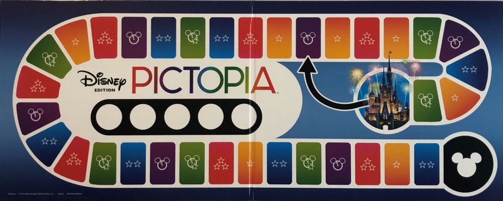 There are some really cool elements to this game. I like the Hidden Mickey answer dials, for sure! The game board is fairly straight forward with game play following a basically straight path to the finish line.