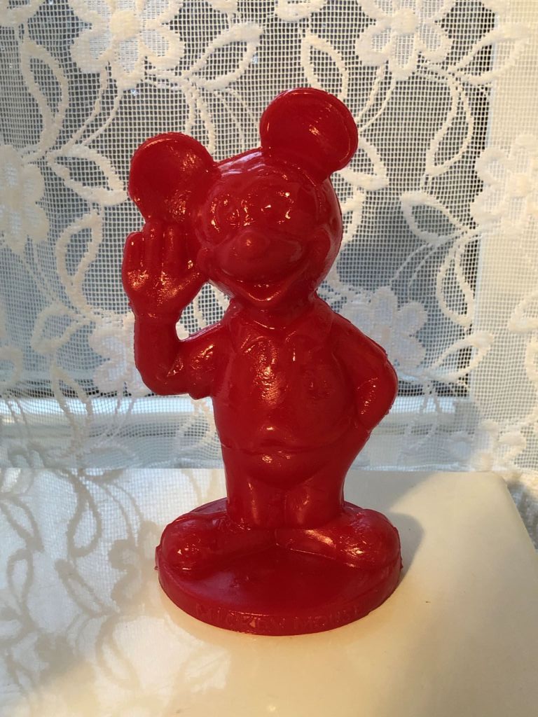 Note that the original design for Mickey Mouse is identical to the one I received in this modern day. Obviously it would not be necessary to change the molds as they would last a very long time without wear or damage. Note the variety of colours. Each machine would produce one colour and that colour was arbitrarily chosen by the individual setting up the machine. So mine is red while the classic version above is pink.