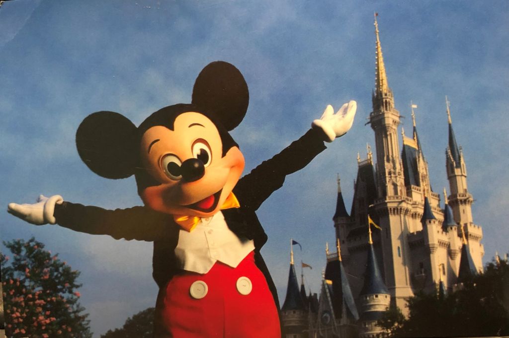 For fun, let’s end by comparing the images on the cards. At first glance it could appear that these shots were made during the same photo session. But then you look closer and notice that the tree behind Mickey (bottom left) is blooming in the postcard but not the promo card.