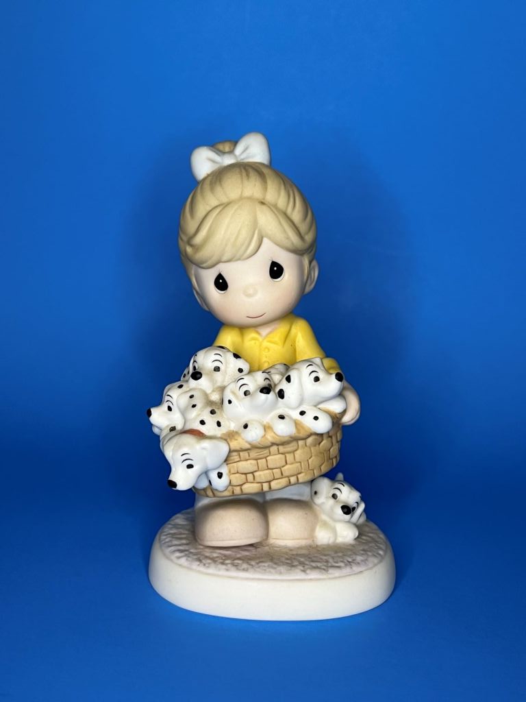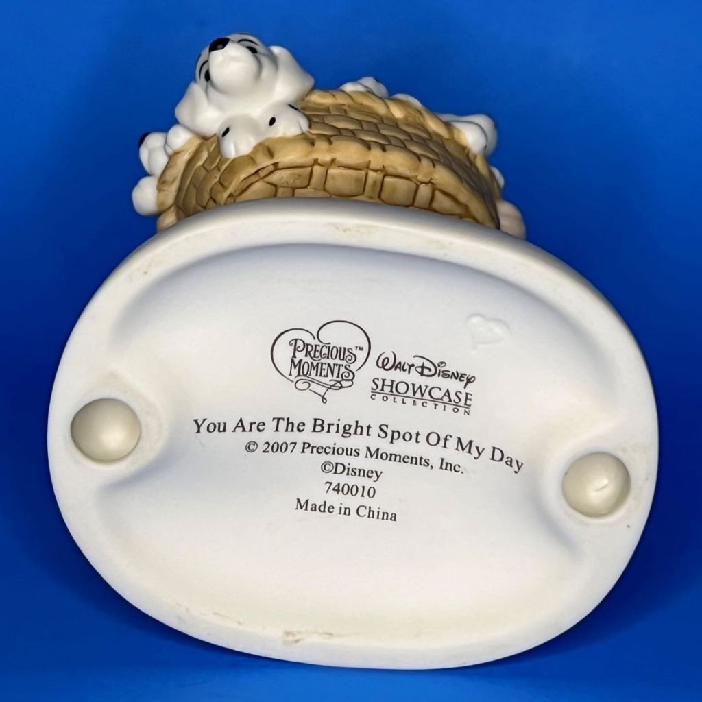 “You Are The Bright Spot Of My Day” is the precise name of this beautiful little figurine. Produced for the Walt Disney Showcase Collection by Precious Moments, it pays homage to the 1961 animated classic movie 101 Dalmatians.