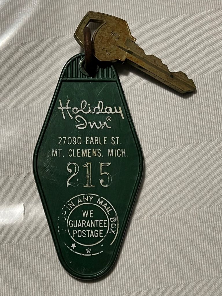 The hotel at 27090 Earle Street in Mount Clemens, MI. seems to be gone now. I can find no record of it on the all-knowing Internet. So, I guess I will never know if the key still fits the door!
