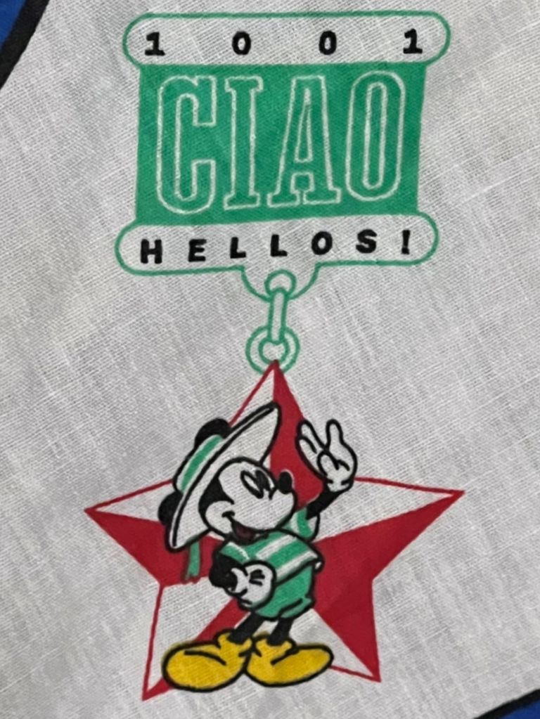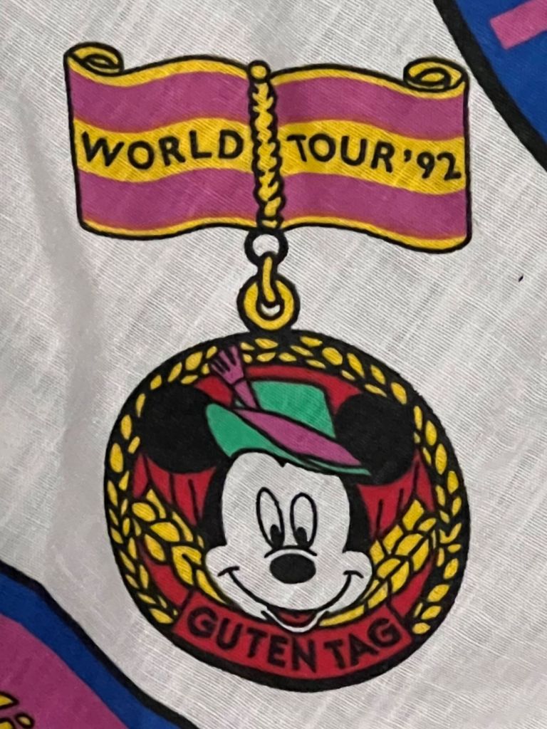 Around the edge of the banner, we have Mickey’s name in the six languages of the countries represented, but again, repeated on all four sides: