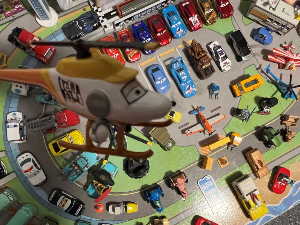 That said, it just seemed right to add ol’ Ron to my Cars display as he was a media helicopter on site to record the big race. I have a racetrack display, so….