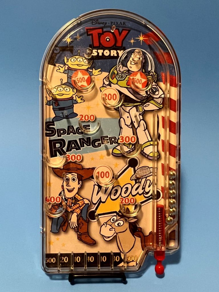 We have the latter here with this Toy Story (2) handheld pinball game: