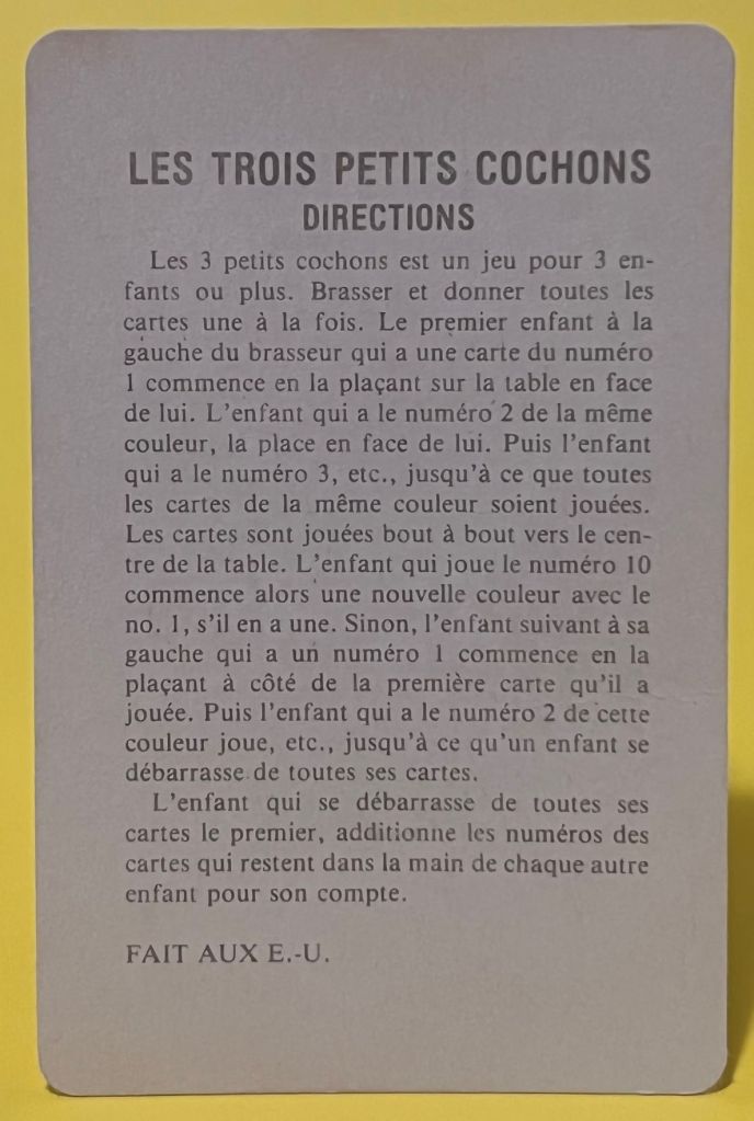 Although this card game was produced by the Russell Manufacturing Company in Leicester, Massachusetts, it is presented in both English and French, while the official languages of the United States are English and Spanish. So, likely this game was intended for sale only in Canada.