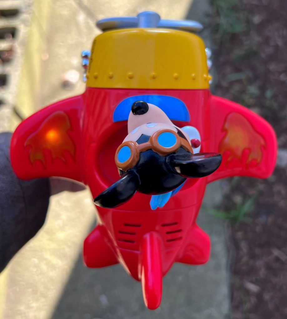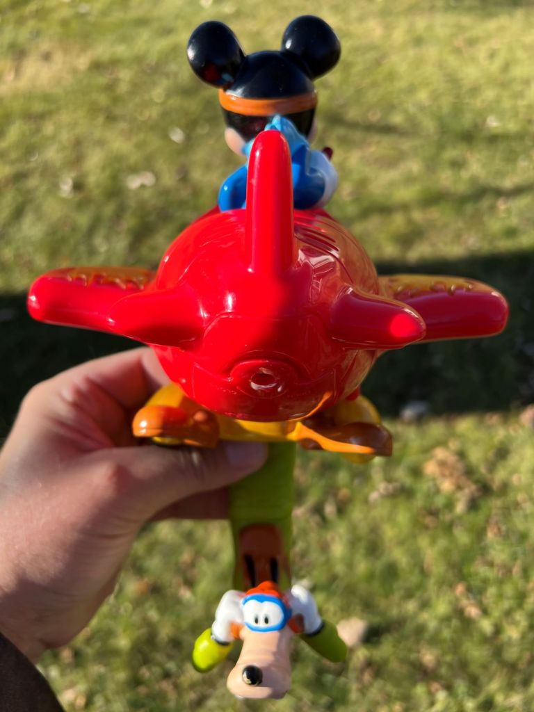 Although this is a Mickey Mouse Super Stunt Plane toy, it also features Goofy. Goofy is well known for his flying prowess. Or lack thereof. He has his own flying school in California and a fun ride in Florida called Goofy’s Barnstormer: