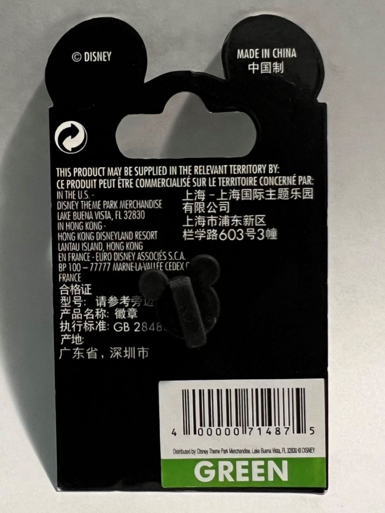 Instead of putting prices on the cards, Disney is smart and uses a colour code. This pin is Green. But the actual price? That’s the smart part: Disney changes it often, always to a higher price, so you’ll never know until you get to the register! Actually, they do have signs around most pin shops with a chart showing the colours along with their current pricing. Newbies to the program might not notice those, however.