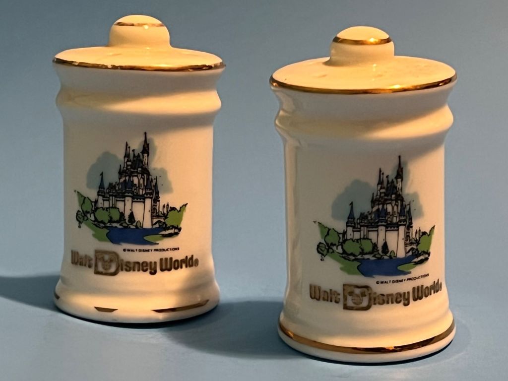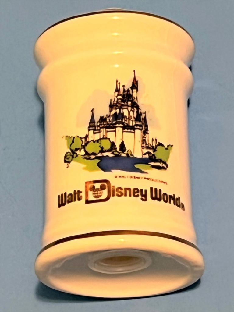 This image of Cinderella Castle is pretty stock and appears on just about every form of ceramic collectible you can image! The shape of the shaker is also reused with many other images printed on them, such as the Orange Bird shakers featured in the link above.