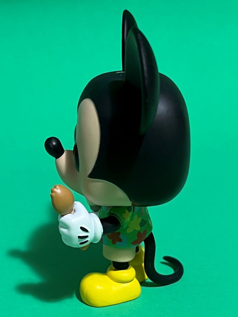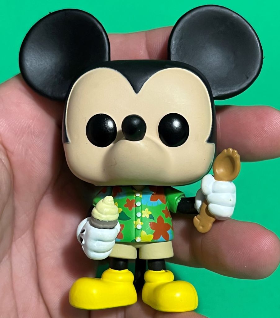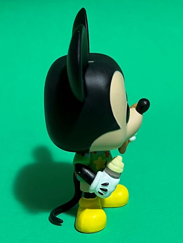 Mickey is dressed like a typical tourist, complete with a Hawaiian shirt, a Dole Whip treat, and a spork. He’s switched his signature red shorts for a pair of Khakis. He’s definitely rocking his new look!