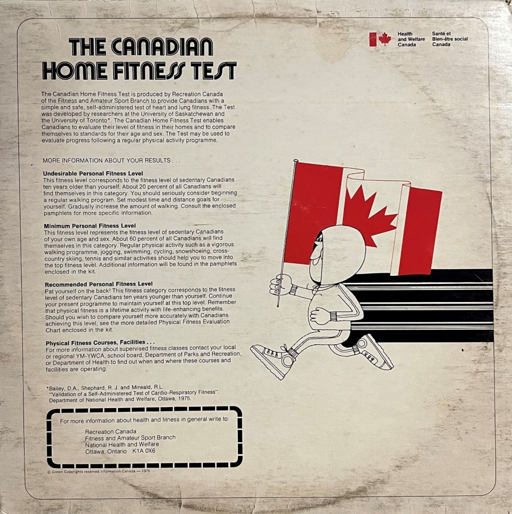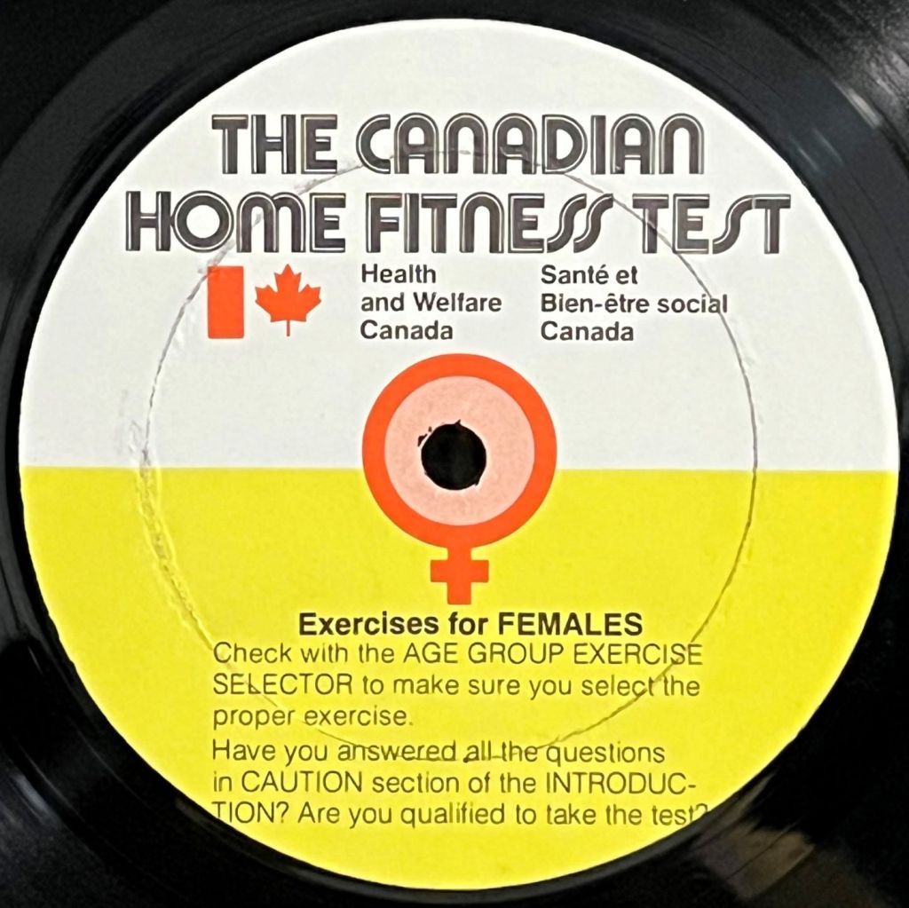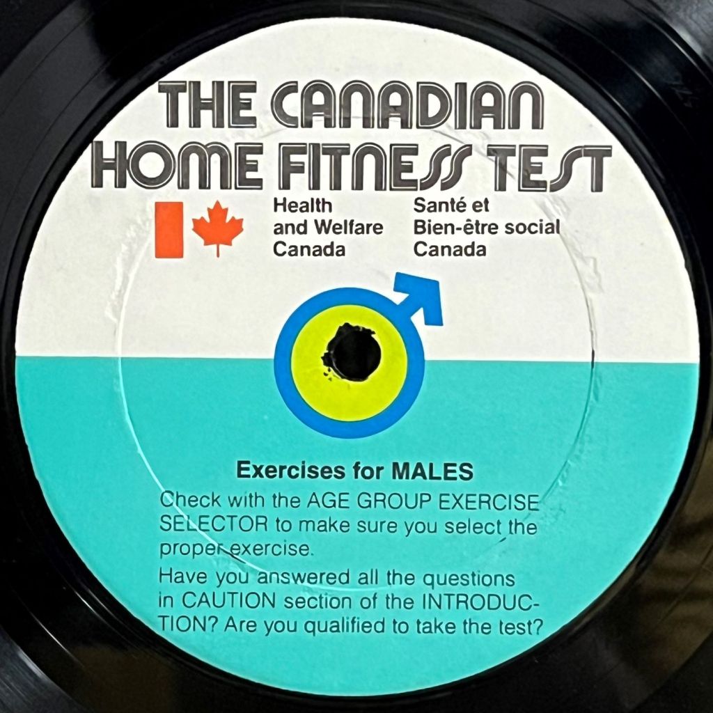 Well, that’s not really true. Often with this product it is recommended to check your fitness level before and during the exercises. So if you have your spandex tights and Adidas running shoes, lets put our stereophonic needles on The Canadian Home Fitness Test LP: