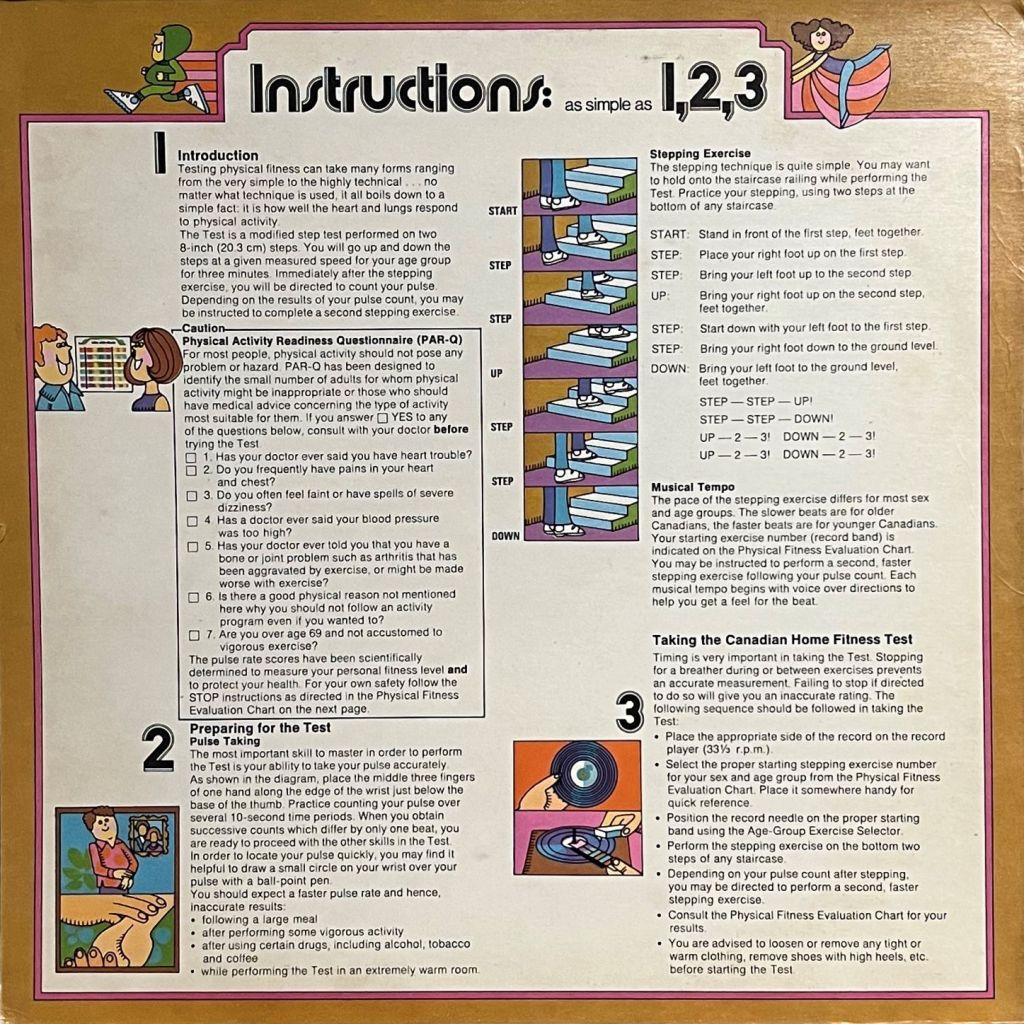 The back of the record cover explains the results of the fitness test. You might be at an undesirable fitness level or the recommended fitness level. Or dead. It doesn’t say what to do in that eventuality.
