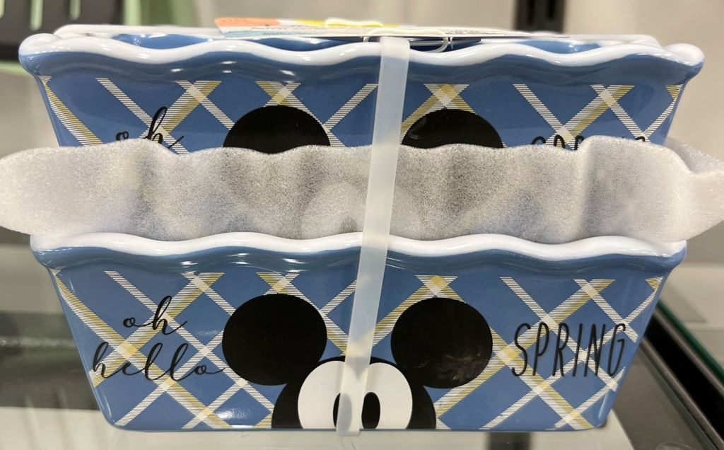 So as I was browsing in a local store to kill some time, I came across these Disney 2-Pack ceramic mini loaf pans:
