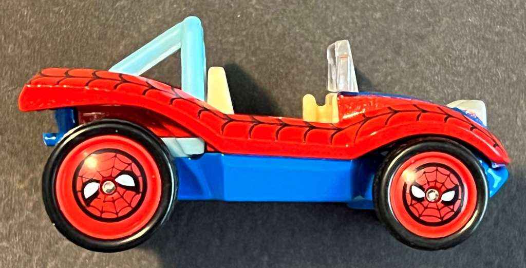 The Spider-Mobile is basically a Dune Buggy. A dune buggy is a recreational vehicle with large wheels and wide tires. It’s designed for use on sand dunes, beaches, off road or desert locations. The design is usually a topless vehicle with a rear-mounted engine.