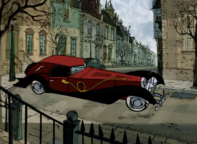 It was almost torture seeing the mad-driving villainess systematically destroy such a beautiful car! Let’s have a look at it from the animated movie before she started to bash it around: