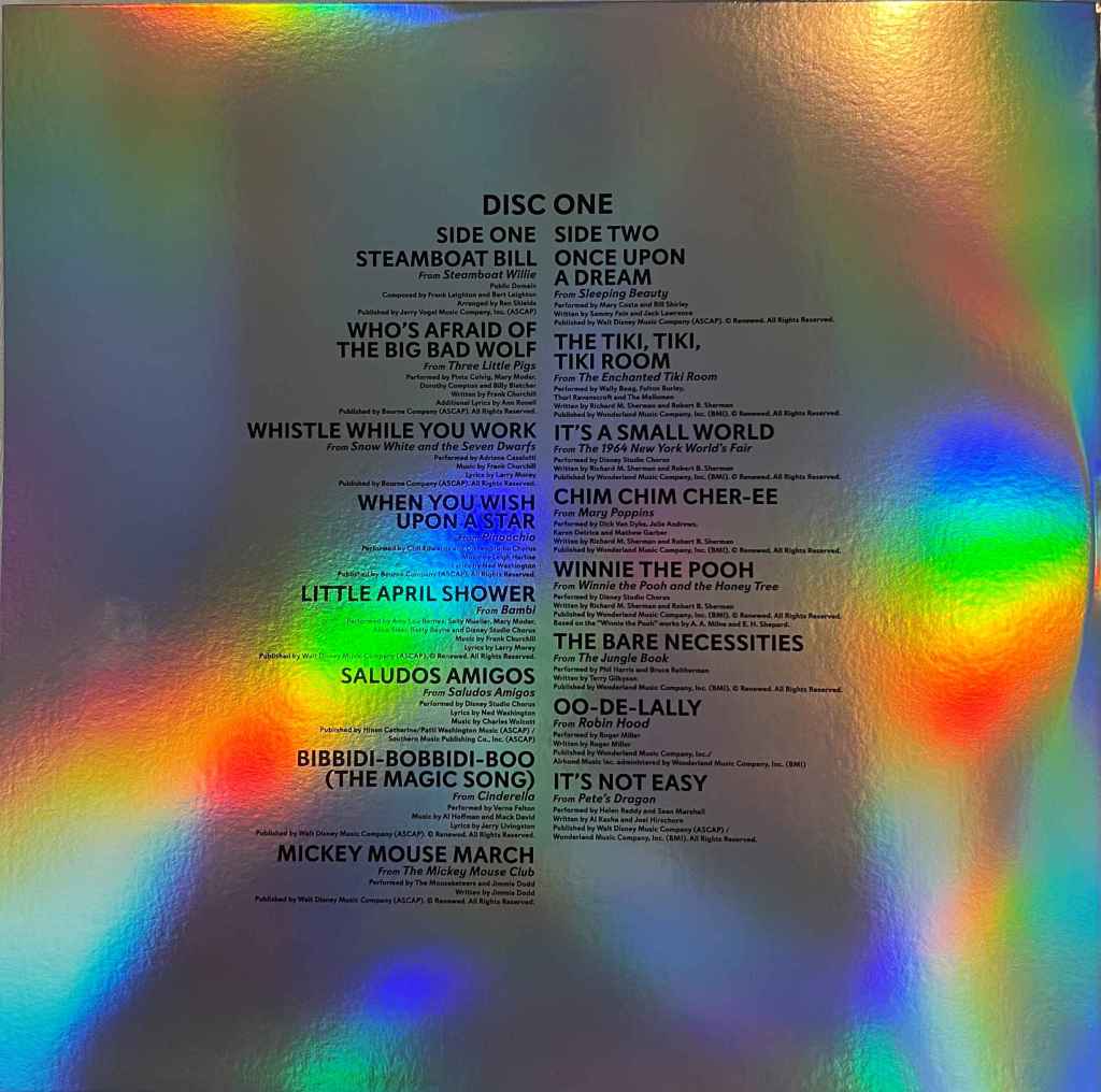 The label could have been more dynamic. This is an image of Mickey that has been used on Disney music releases extensively. Something designed exclusively for this set would have been nice. Also, I was expecting a spectacular image inside the cover when I opened it up, and not just a repeat of the playlist that is already printed on the back of the cover.