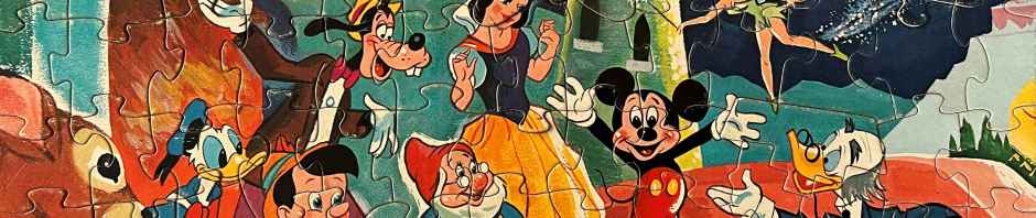I have several Jaymar puzzles from this era, such as my Zorro version. Other big manufacturers of vintage Disney puzzles is Whitman, and you can see my Walt Disney World example here, and my Walt Disney Characters example by Parker Brothers here.