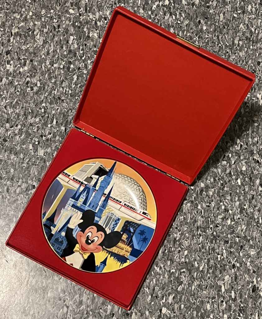 This Walt Disney World 15th Anniversary Commemorative Plate comes in a beautiful red box that opens to reveal an even more beautiful image! It features many of WDW’s most iconic structures, and of course, a most iconic Mouse.