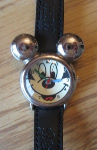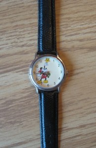 The first one I got was on a quiet afternoon when we had gone over to Fort Wilderness for a bit of a break in the action. A lovely afternoon spent wandering around and of course, going in the shop. I pick this watch because I loved how big it is (it is a man’s watch) and because it has all twelve numbers and it easy to read. Since it was my first watch, I wore it for a number of years before getting another one. The watch face is 1 3/4 inches across, very big on my skinny wrist but very easy for me and everyone else to see!